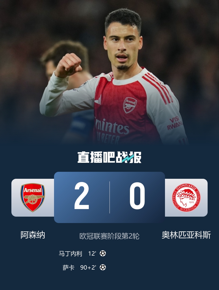 今天的欧冠,阿森纳2-0奥林匹亚科斯,曼城2-2遭摩纳哥绝平,欧洲杯直播纽卡4-0大胜圣吉罗斯。