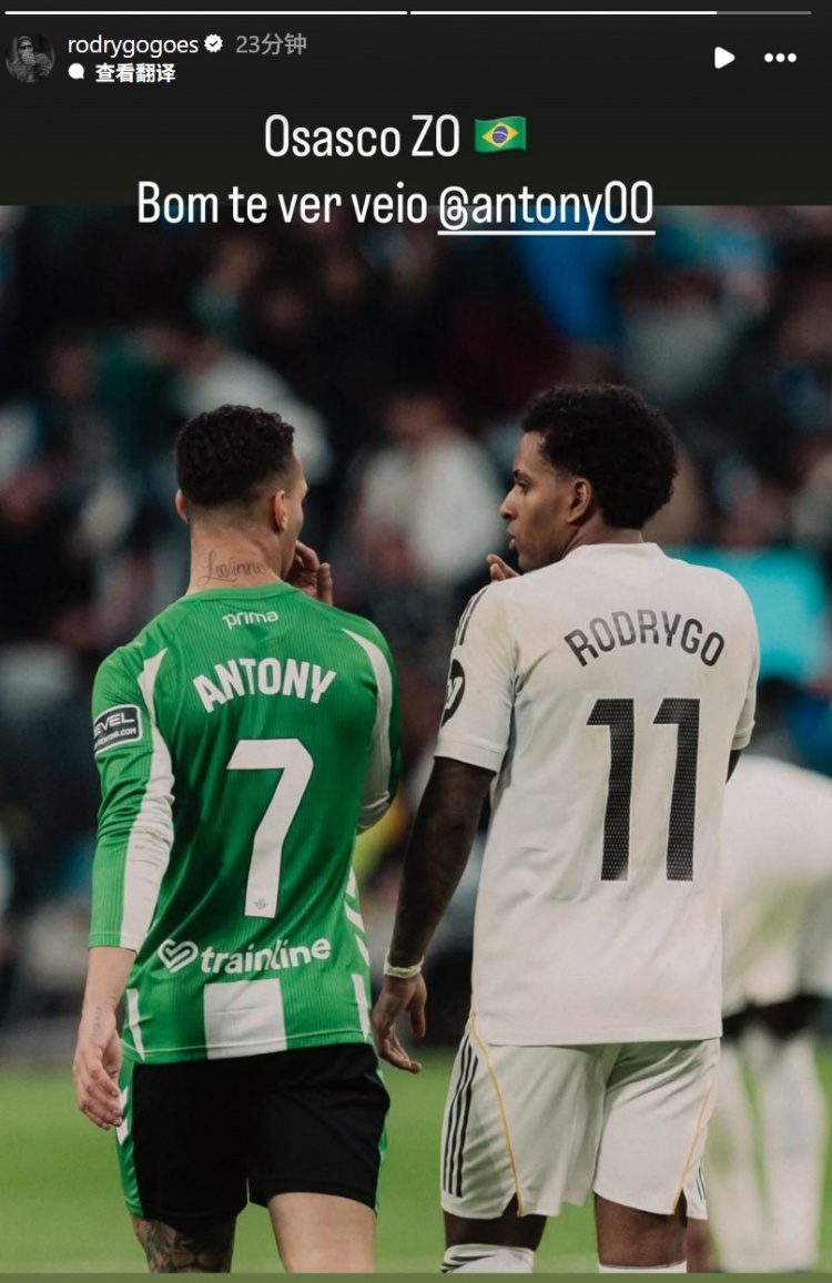 罗德里戈在个人社媒晒出与贝蒂斯球员安东尼的合照苏超决赛,配文写道:“很高兴见到你!”